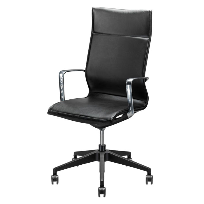 Sillón ejecutivo STUDIO SIT respaldo alto con coderas, giratoria con respaldo alto, ajuste neumático de asiento y reclinación libre, estructura de polipropileno negro, curpiel negro con acojinado, coderas integradas de aluminio pulido, base negra de araña de 5 brazos, rodajas alfombra de Ø 65mm, peso neto de la silla 9.5 kg