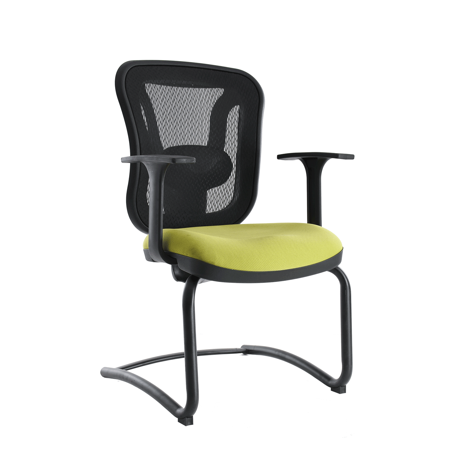 BM 1002 silla visitante, respaldo en malla con soporte lumbar, brazos fijos, trineo negro