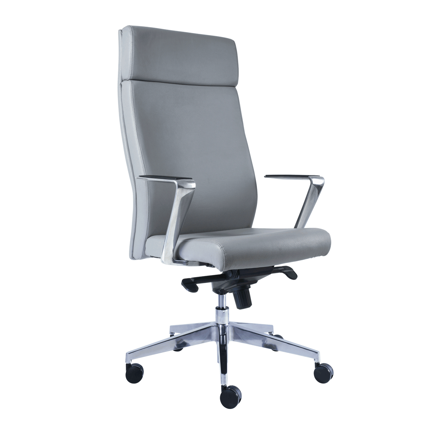 ejecutivo extra alto con cabecera c/brazos aluminio , base de aluminio con rodaja de 60 mm , mecanismos de rodilla syncro con 5 posiciones de bloqueo.