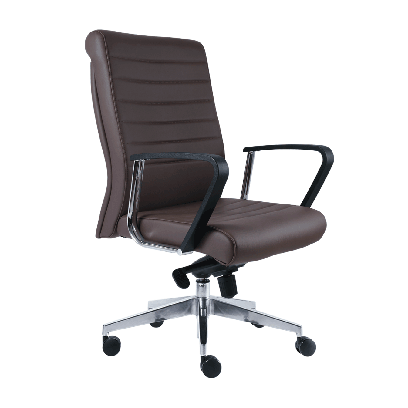 Ejecutivo alto c/brazo aluminio , base de aluminio con rodajas de 60 mm , mecanismos de rodilla syncro con 5 posiciones de bloqueo.