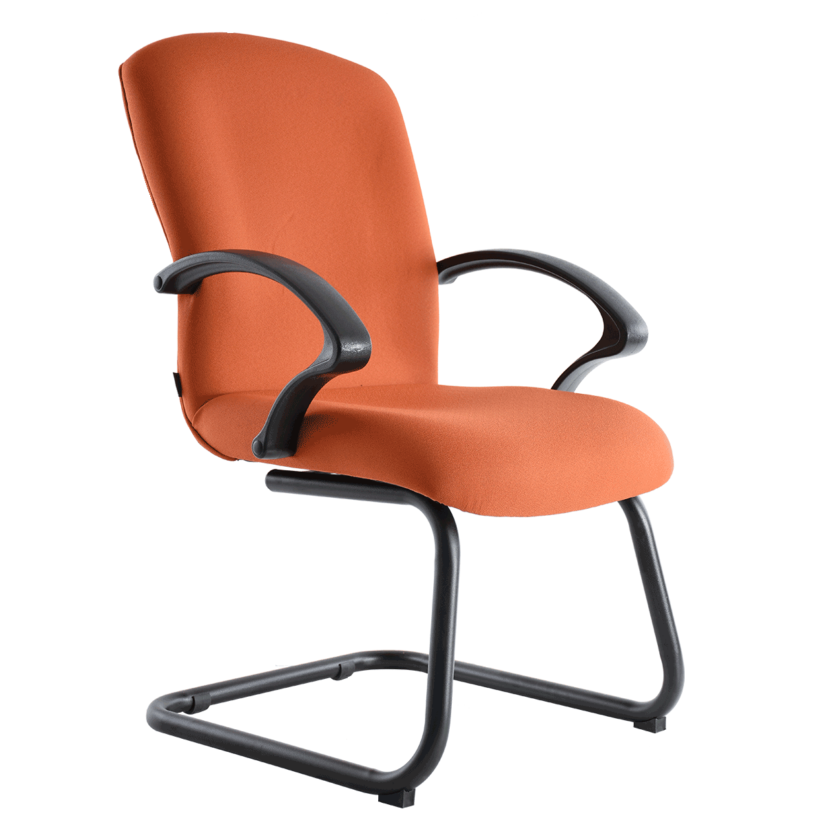 silla para visitante tapizado en tela, brazos de polipropileno color negro, estructura de una sola pieza en madera domada, base de trineo color negro