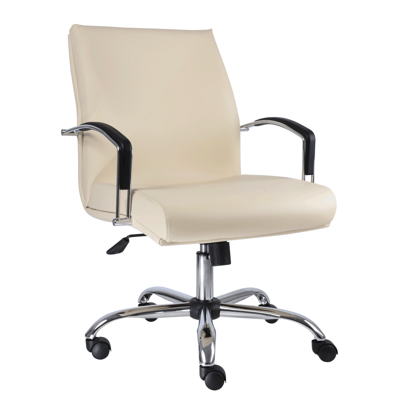 ejecutivo respaldo medio, mecanismo ejecutivo reclinable con palanca de bloqueo, brazos de doble barra de acero con pad de poliuretano y base cromada