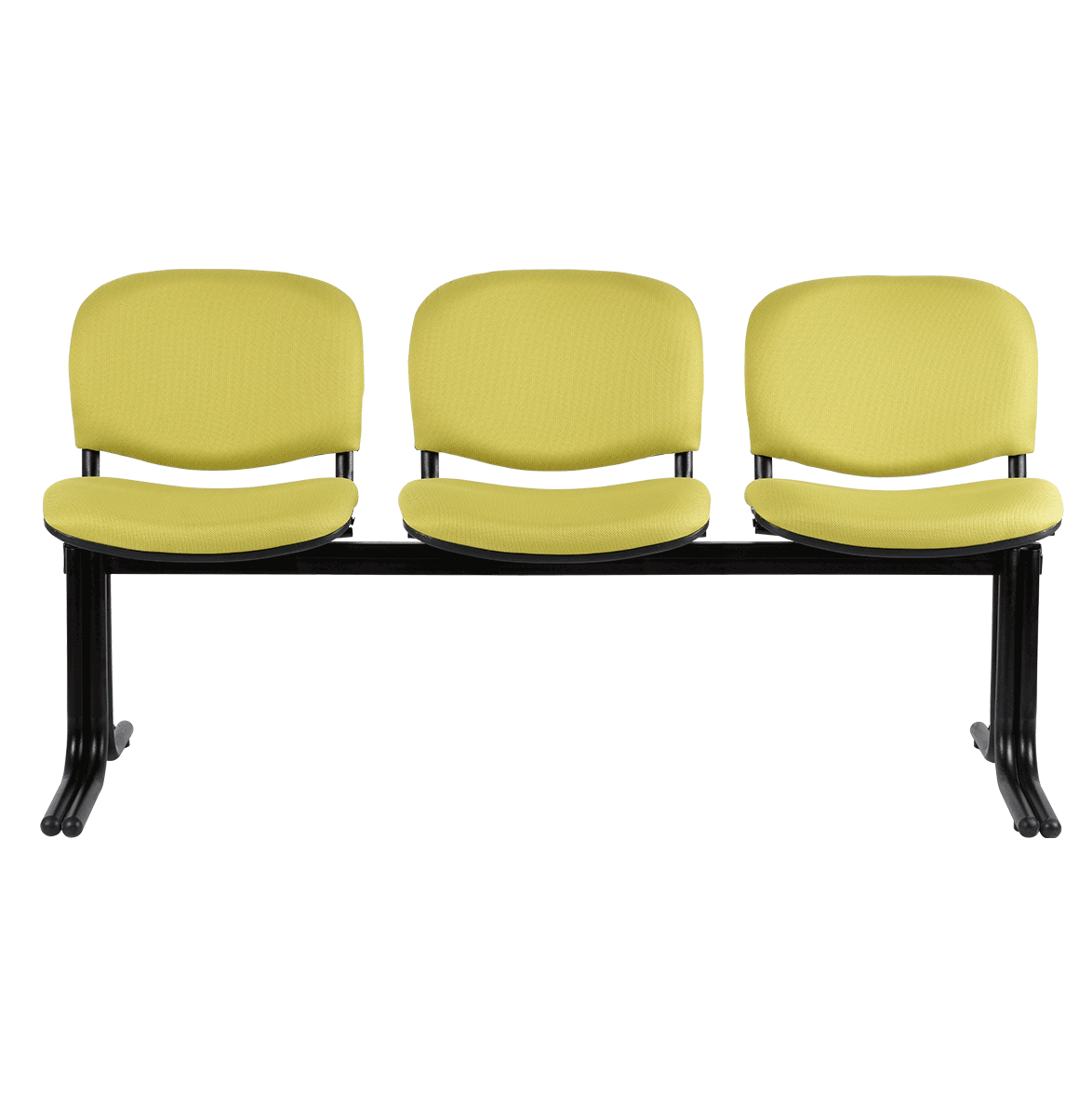 Banca de tres plazas, tapizada, pata de doble tubo