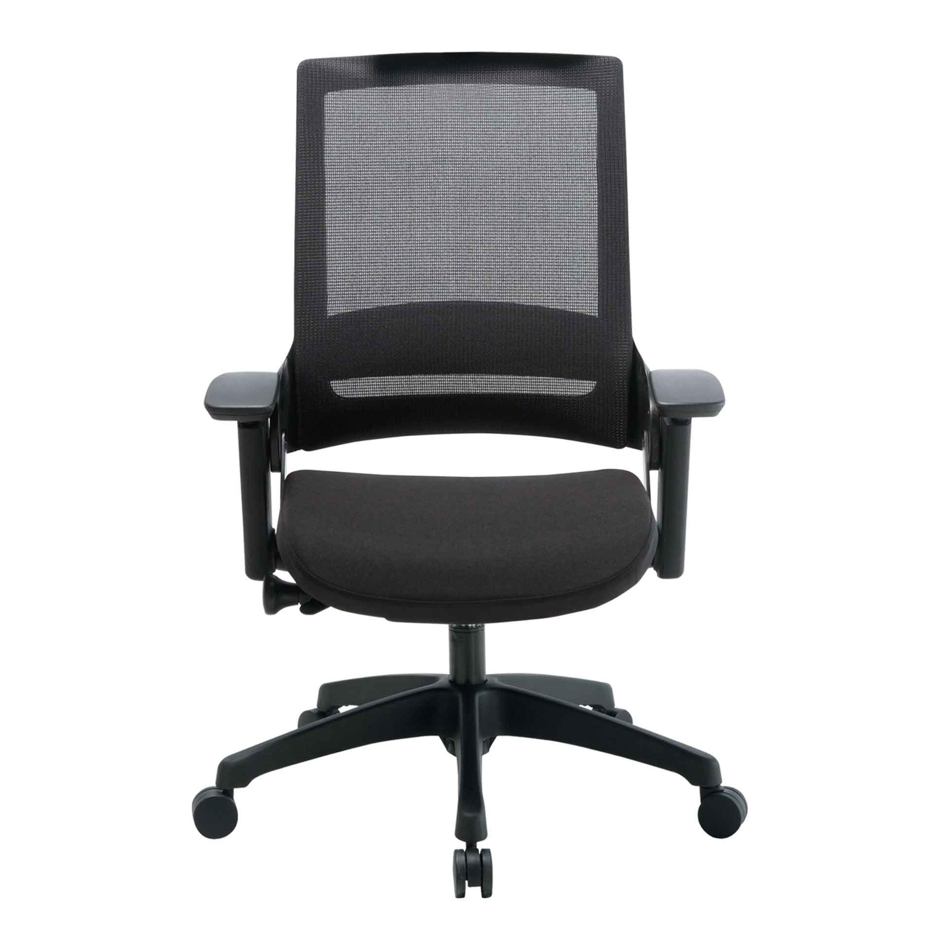silla ergonómica de uso pesado, fabricado en estructura de nylon color negro, malla flexible color negro , brazos ajustables en giro, altura y ancho , mecanismo autorregulable con centro de rotación en el soporte lumbar, perilla lateral para ajuste de tensión y tope de reclinación, ajuste de profundidad en el asiento , asiento con poliuretano inyectado de 60 kilos de densidad, base color negro con rodajas de 60 mm en color negro , pistón certificado
