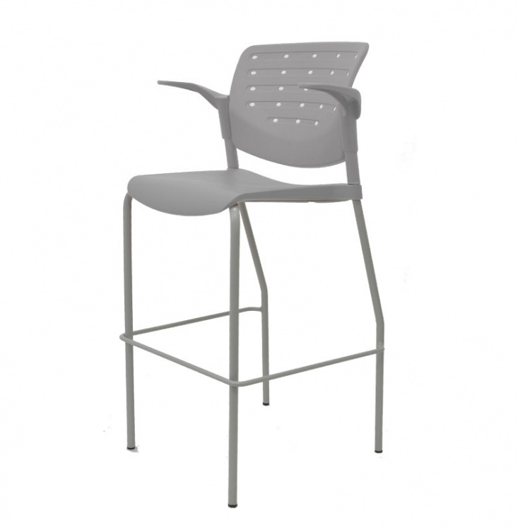 banco tipo taburete, con descansa pies, estructura metálica, terminada en color gris, asientos y respaldos color a elegir fabricados en polipropileno, con brazos