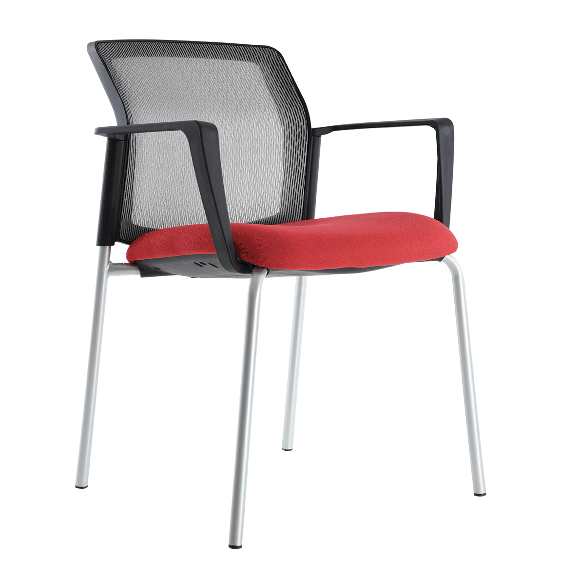 silla visitante de 4 patas con brazos , respaldo tapizado en malla en 4 colores a escoger . asiento tapizado en tela, estructura en perfil tubular terminado en pintura horneada color gris