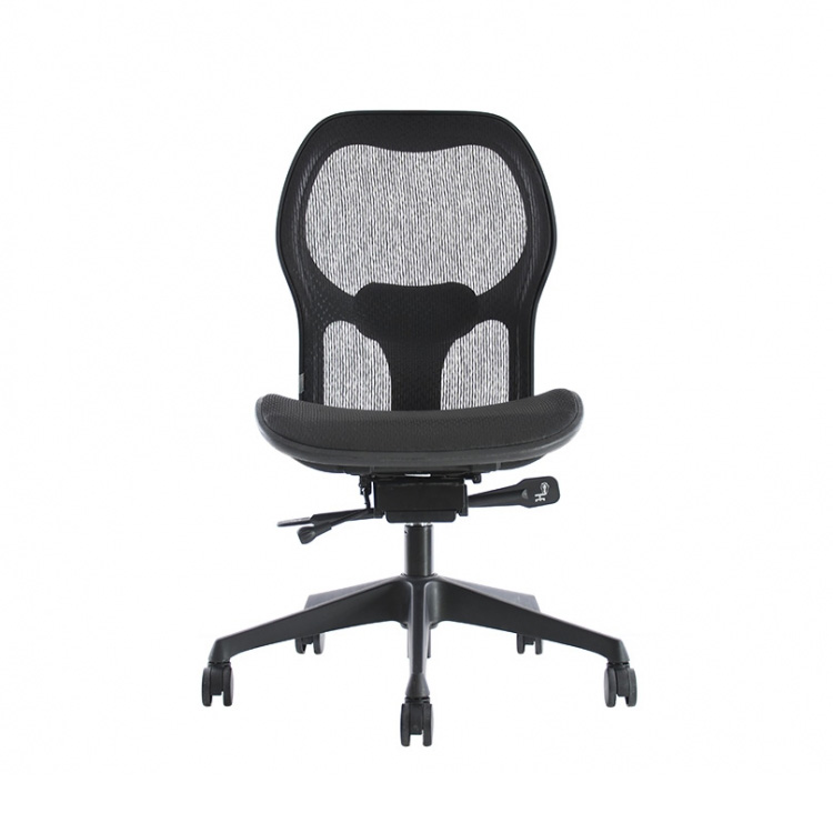 sillón ejecutivo de respaldo alto , respaldo y asiento tapizado en malla Flex, sin brazos , mecanismo syncro autorregulable con base de nylon color negro