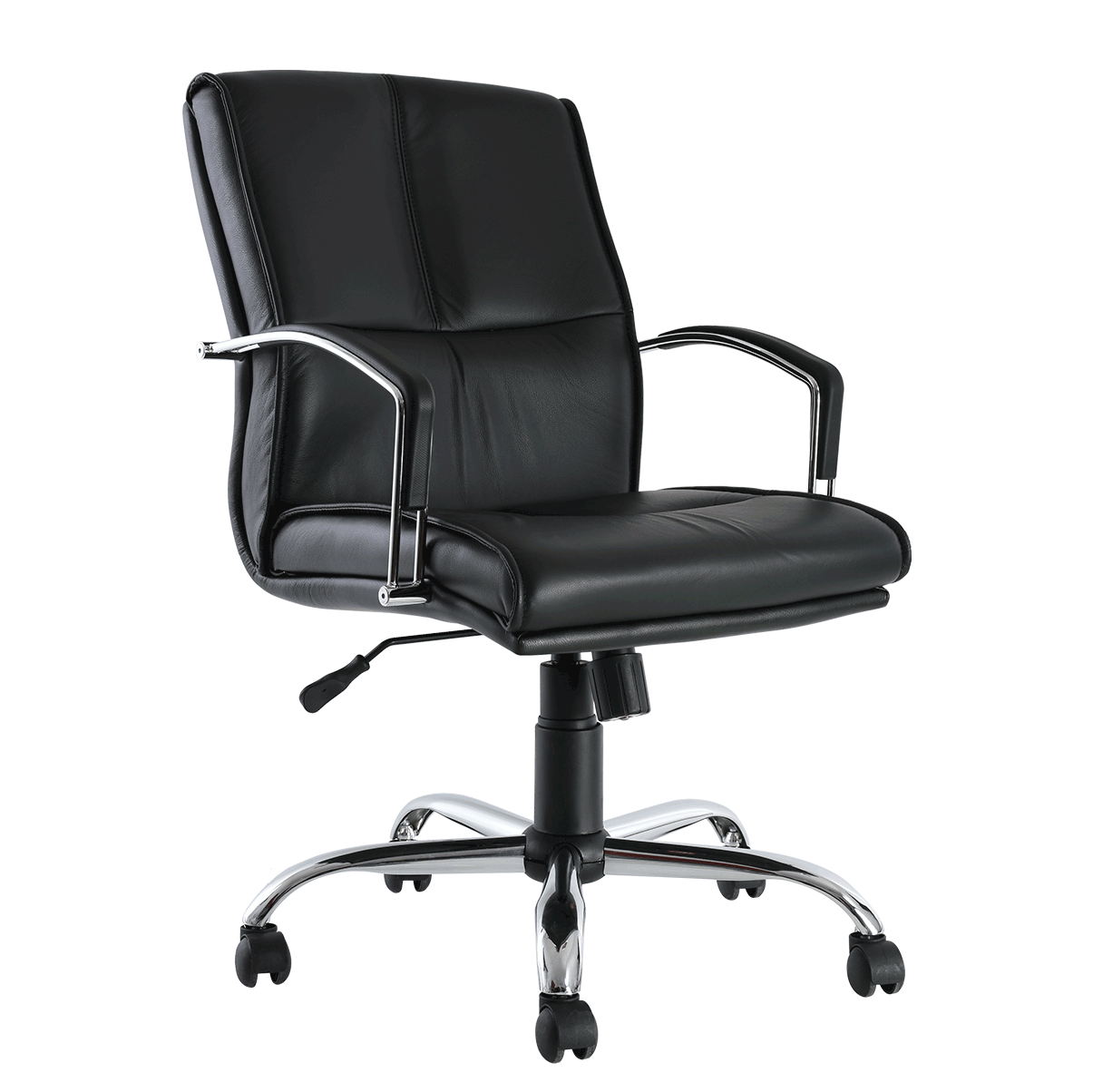 Ejecutivo respaldo medio, mecanismo ejecutivo reclinable, con palanca de bloqueo, brazos de doble barra de acero con pad de poliuretano, base cromada