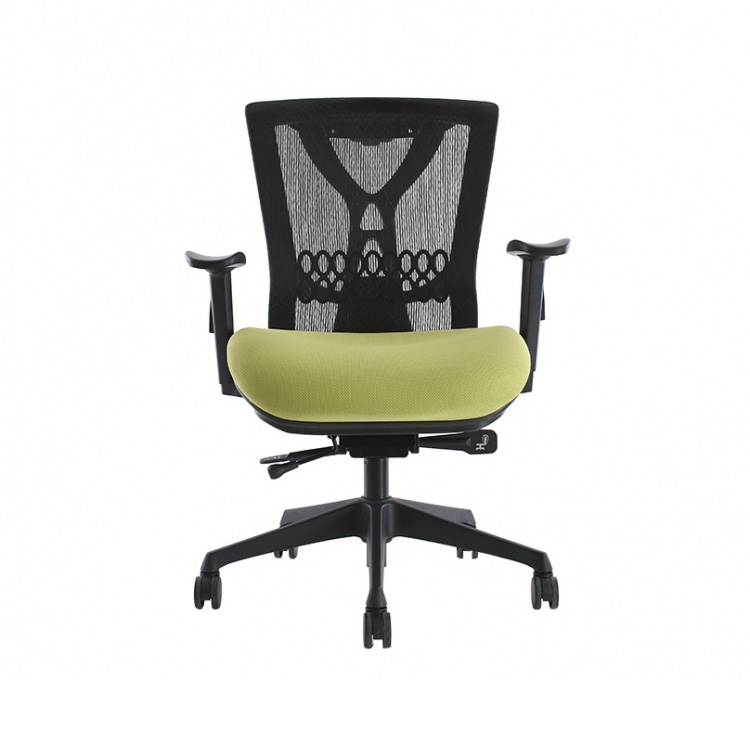 sillón ejecutivo de respaldo alto tapizado con malla Flex en respaldo y asiento tapizado en tela , mecanismo syncro autorregulable con cuatro posiciones de bloqueo y ajuste de profundidad de asiento, brazos con ajuste de altura, base de nylon con rodajas de 60 mm color negro