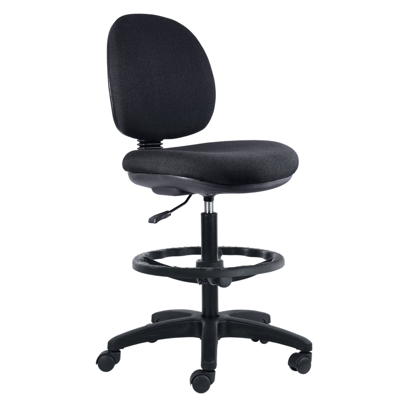 silla secretarial básica, asiento amplio, mecanismo giratorio con palanca para ajustar la altura, pistón neumático, base reforzada de 5 puntas con rodajas gemelas, tapizada solo en crepe color negro, se envían por caja 3 POR CAJA