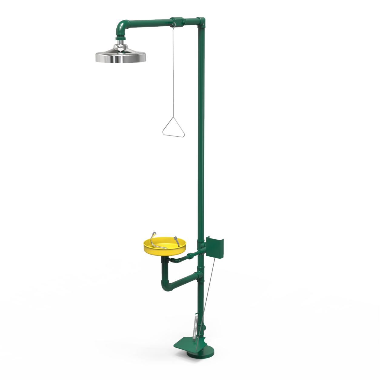 -Lavaojos de 2 rociadores -Charola de plástico ABS amarillo -Campana de acero inoxidable -Accionamiento por pedal y palanca