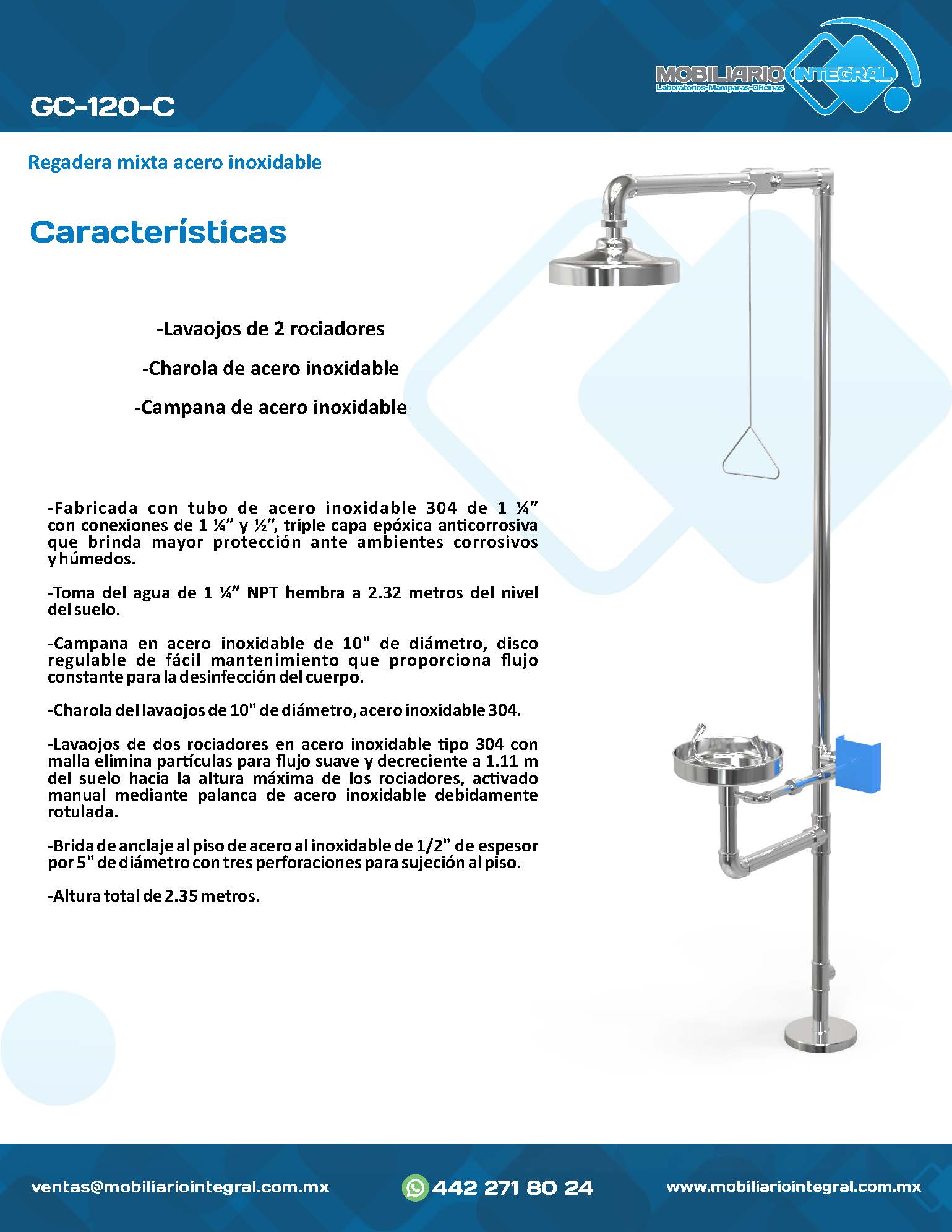 -Lavaojos de 2 rociadores -Charola de acero inoxidable -Campana de acero inoxidable
