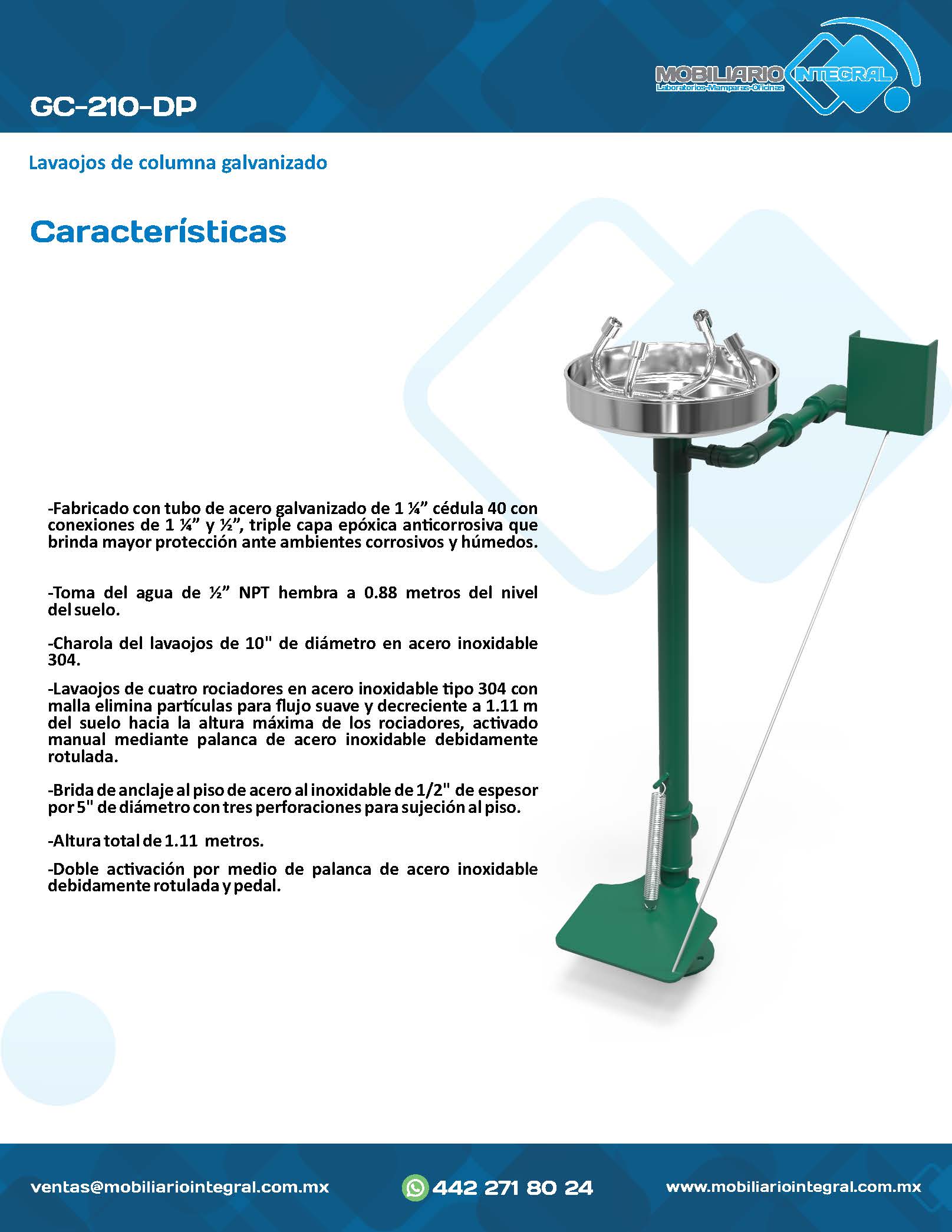 -Lavaojos de 4 rociadores -Charola de acero inoxidable -Accionamiento por pedal y palanca