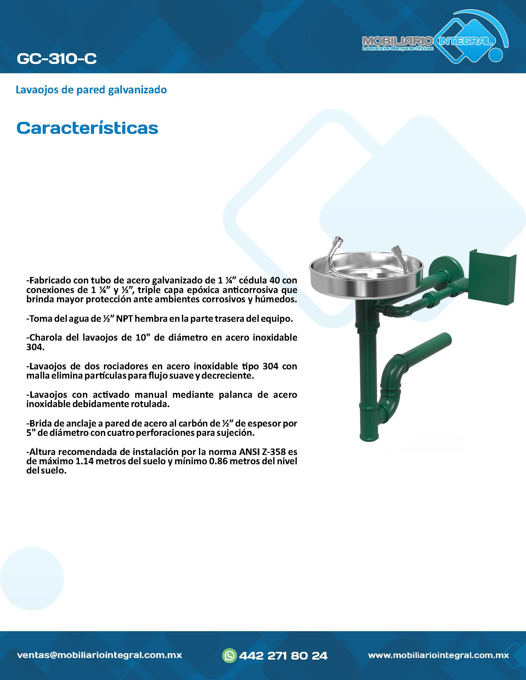 GC-310-C Lavaojos de pared galvanizado