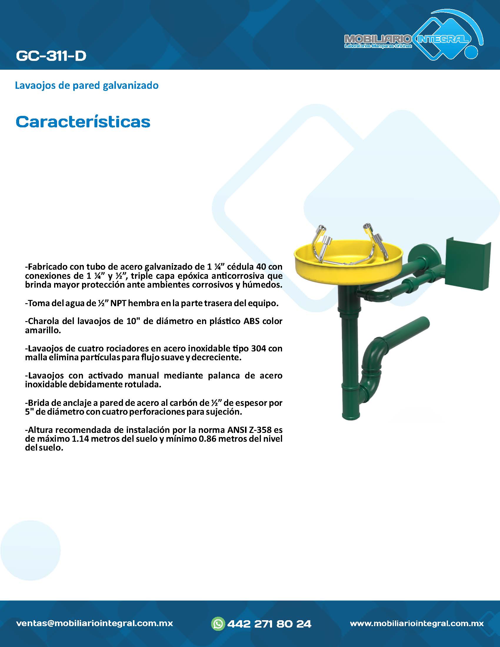 GC-311-D Lavaojos de pared galvanizado