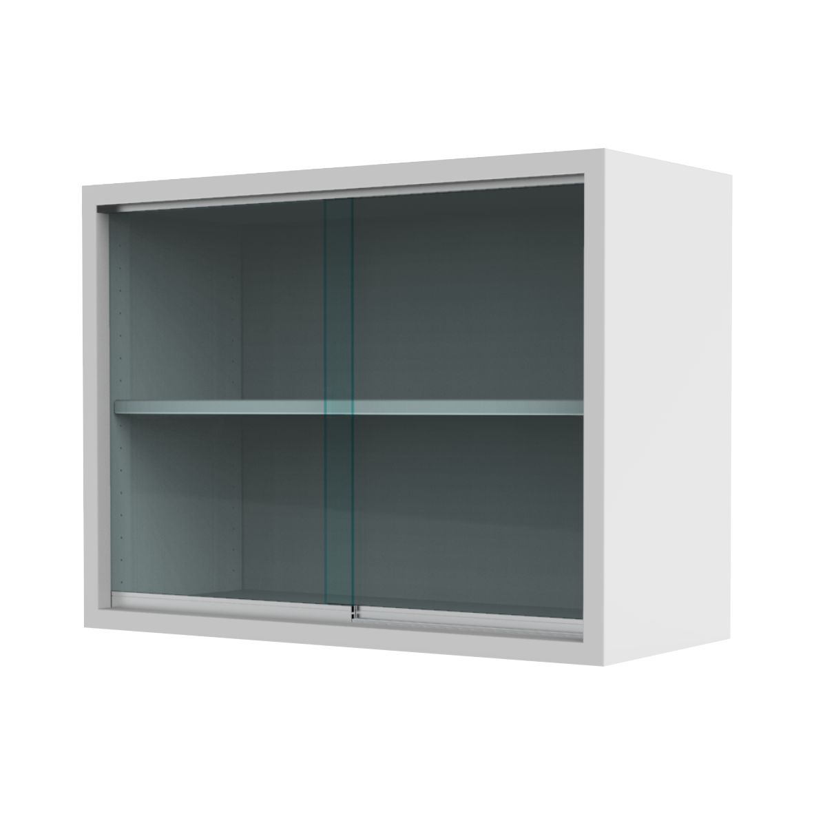 -Con dos puertas de vidrio y un entrepaño.