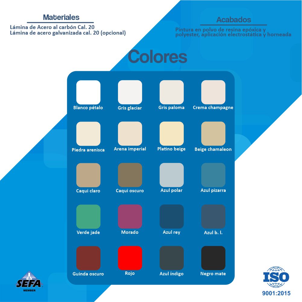 -Frente 80cm -Lámina de Acero al carbón Cal. 20 -Lámina de Acero galvanizada cal. 20 (opcional)