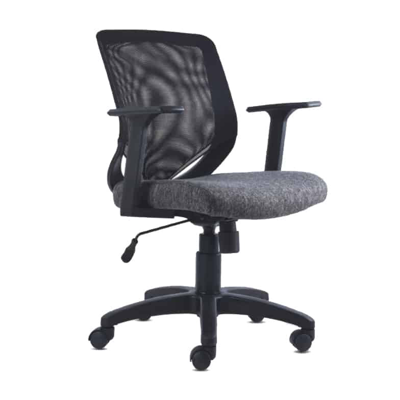 silla operativa de respaldo medio con mecanismos ejecutivo reclinable, brazos de polipropileno , respaldo tapizado en malla, asiento fabricado en madera domada , espuma de poliuretano flexible , base de 5 puntas fabricada en nylon